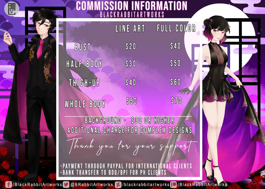 I will put finished watermarked artworks on my social media sites and/or portfolio unless I sold copyright to you but you can also request for it to be published in a later date (when your novel is published, mod is released etc)ALL WORKS ARE NOT ALLOWED FOR COMMERCIAL USE UNLESS AGREED UPON (Commercial Fees will apply)